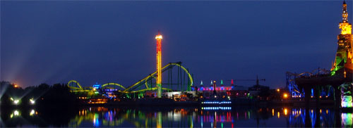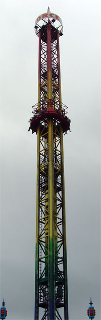第二次是今年4月和公司同事一起去的,玩了一直想玩的弹射式过山车——疯狂眼镜蛇还有直上直下极速升降的太空梭(稍后上图)。