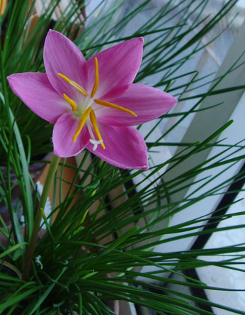 而这个兰花草,跟了我两年多了,之前一直开的是小小的白花,前天早上起床突然发现,开了一朵很大的,非常漂亮的粉色的花。。。。