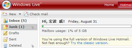 刚才进信箱,一不小心看到live mail竟然变成5G了。我什么时候用得完呀???