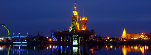 我们决定继续玩夜场的,竟然遇上了以前一直没注意的飞龙在天,虽然排队的人不多,但一次只能进4个人,相当于一个室内的小过山车,只是没有360度翻转,还是蛮好玩的,我和弟弟两个进去就狂喊,背后两个MM的的喊声都让我们压没了。。。。
